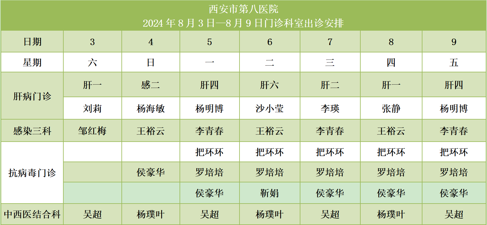 环球360游戏网站2024年8月3日—8月9日出诊安排